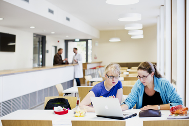 Das Lerncafe im Erdgeschoss dient dem Austausch der Studierenden untereinander.