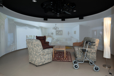 Die Sim-Arena erlaubt die Simulation verschiedener Szenarien mithilfe einer 270 Grad-Projektion mit passenden Requisiten.